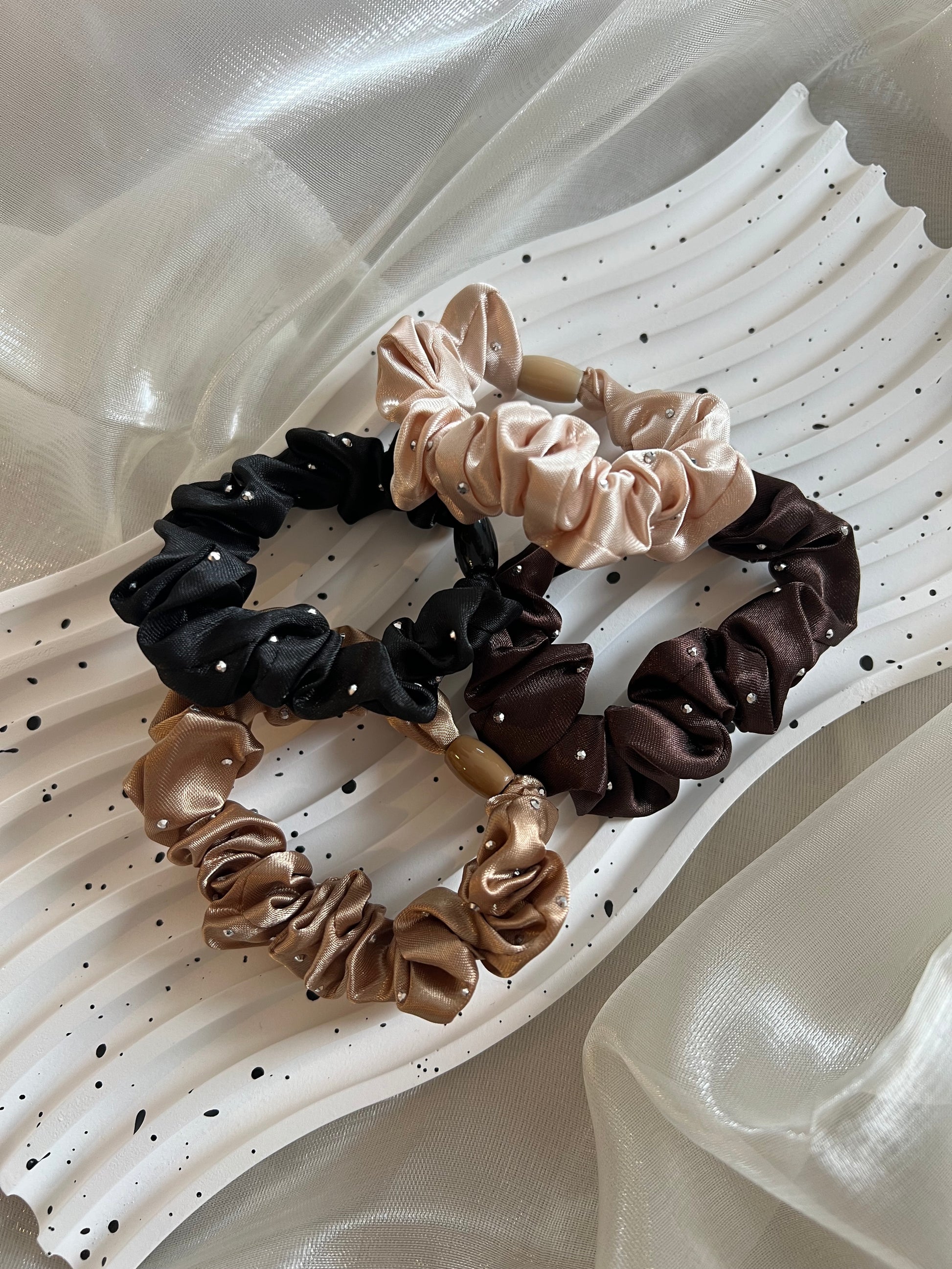 Elevate your hairstyle with our elegant diamond-adorned hair ties. Each tie features: